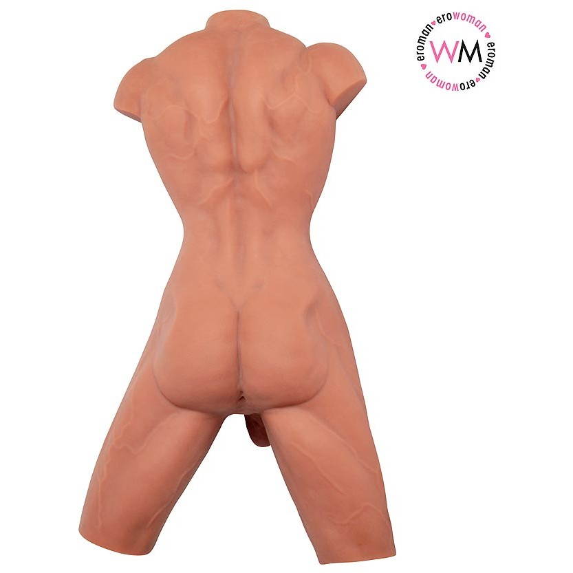 Выполнен торс из термо реалистичного эластомера, который по тактильным ощущениям и упругости напоминает человеческую кожу. Материал абсолютно безопасен, и требует ухода.