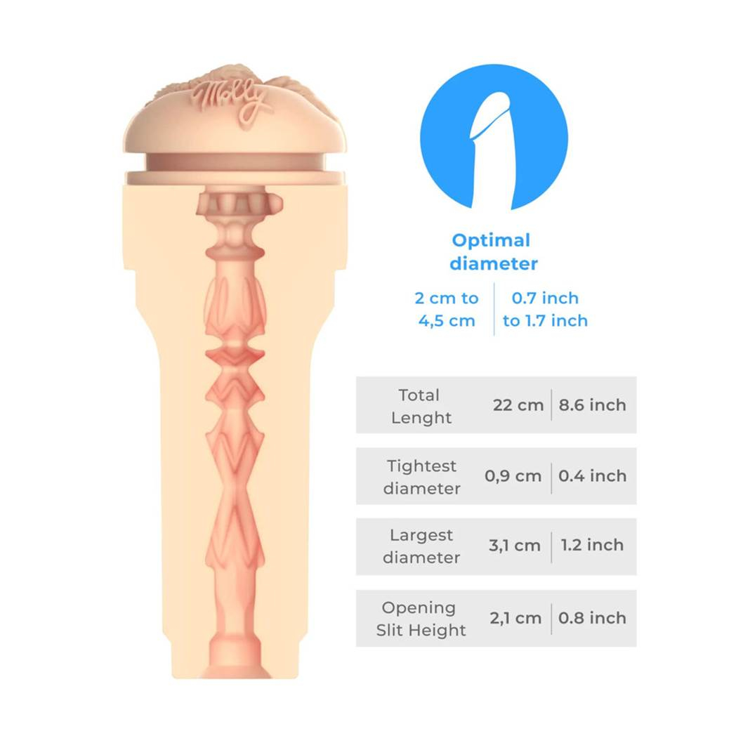 Провести незабываемые моменты в компании Молли Стюарт позволит невероятный мастурбатор Molly Stewart из коллекции Feel популярной нидерландской марки Kiiroo, специализирующийся на высокотехнологичных и максимально реалистичных секс-игрушках. Мастурбатор выполнен по точному слепку с интимной зоны порноактрисы и возбуждает с первого взгляда детализированным дизайном! Для особенных фанатов на игрушке даже есть рельефный автограф звезды. Мастурбатор-вагина имеет по-настоящему реалистичное входное отверстие в виде вульвы со всеми мельчайшими деталями и текстурой, которые при использовании дополнительно массируют поверхность пениса. Внутри вас ждет тесный тоннель с фантастической фактурой из многочисленных стимулирующих элементов. Он плотно обхватывает пенис, чтобы интенсивно ласкать его по всей длине, пока вы не окажетесь на пике блаженства.