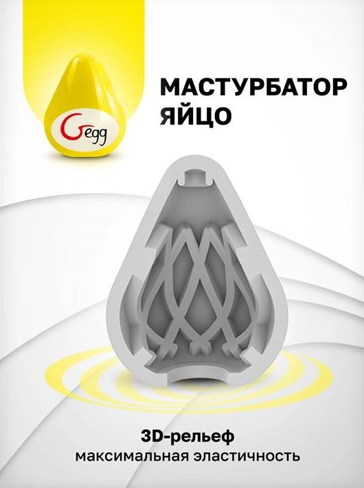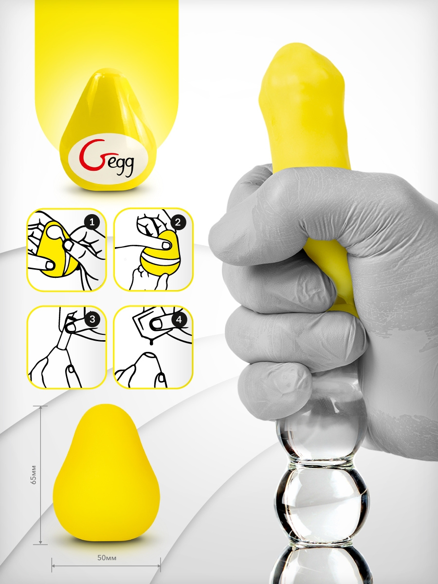 Gegg мягкий и гладкий снаружи, но рельефный внутри. Объёмные 3D-грани будут создавать интенсивные ощущения, массируя каждый сантиметр головки и ствола. Желтое яйцо похоже на бутон цветка и имеет внутренний рельеф в виде ребрышек-лепестков. попробуйте покрутить этой яйцо и ваше удовольствие закрутится в калейдоскопе. Уникальные текстуры мастурбатора повышают чувствительность, приводя к новым необычным ощущениям и яркой кульминации!