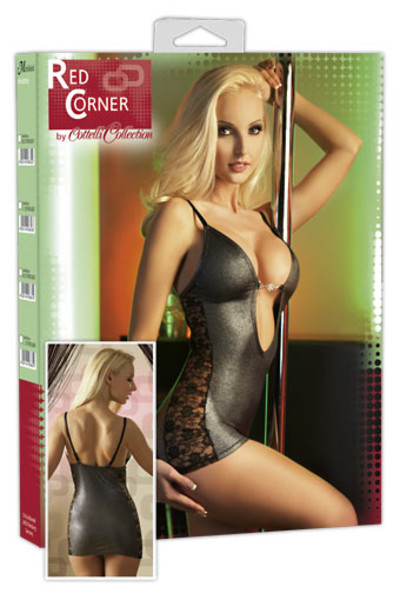 Сексуальное платье с нежным блеском, украшено вставками кружева и стразами, подчёркивающими глубокое декольте. Бретели регулируемые.