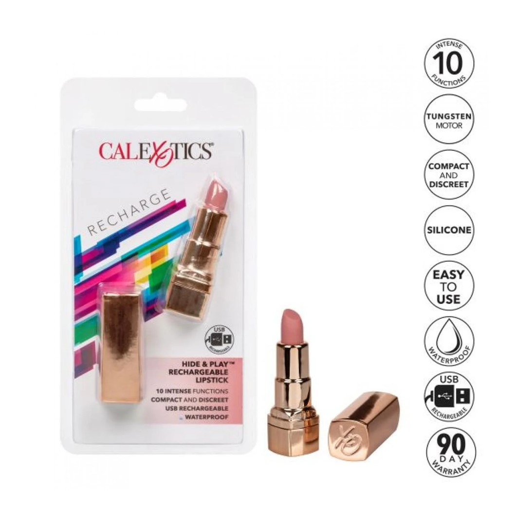 Популярный женский минивибратор Hide & Play Lipstick с нежно-розовым наконечником. Игрушка выглядит в точности как губная помада в тубе черного цвета. Эластичный силиконовый наконечник реалистично имитирует красящий карандаш и по виду практически неотличим от настоящего.