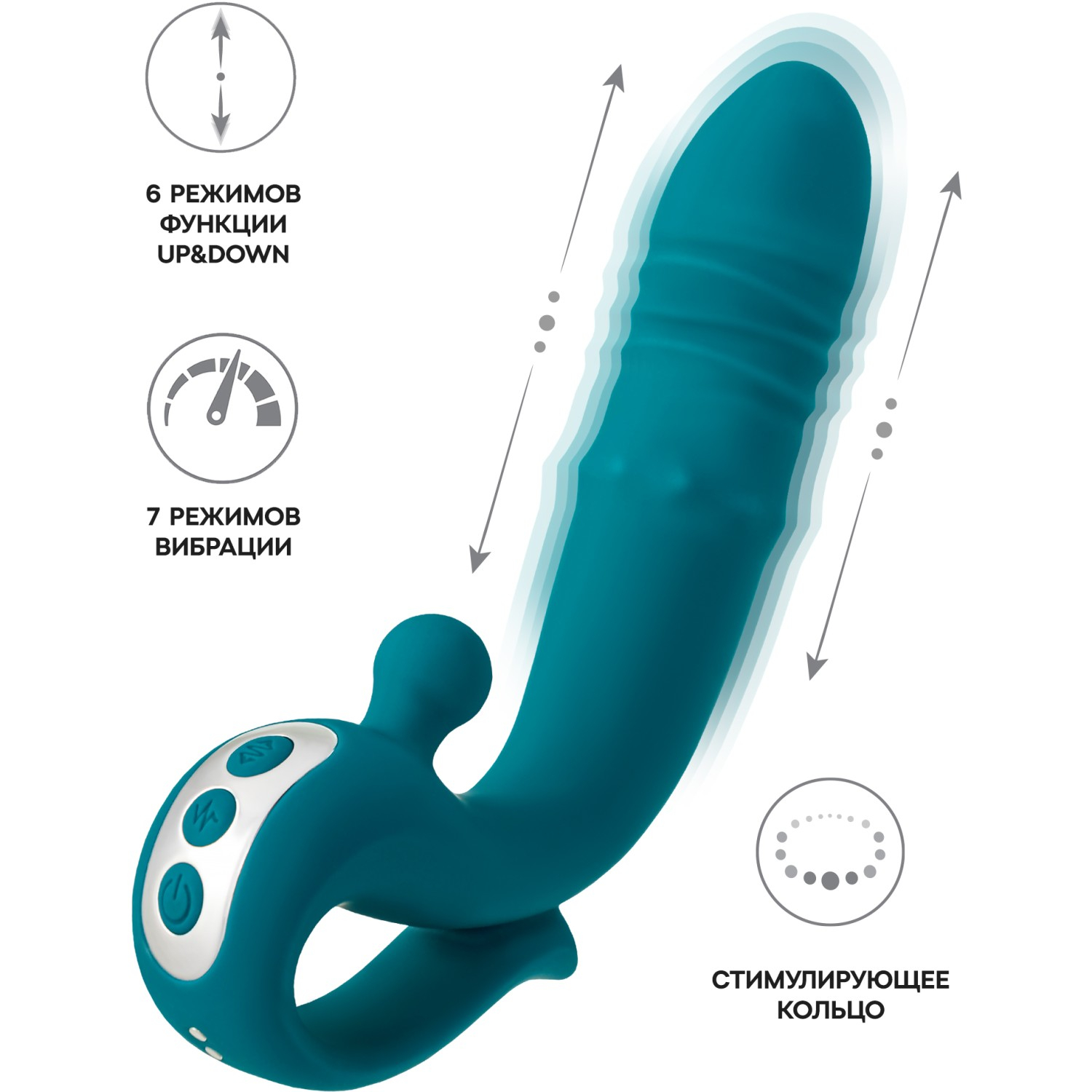 Поступательные движения ствола — вверх и вниз — имитируют реальные фрикции, погружая тебя в захватывающий вихрь страсти. Вагинальная часть в форме пениса с детализированной головкой и рельефом, напоминающим эрекционное кольцо, дарит невероятное чувство наполненности. А еще одно удивительное дополнение — стимулирующее кольцо на стволе в виде бусин, которые двигаются в том же направлении куда и активный отросток, они подарят невероятно чувственный внутренний массаж. 12 см чистого удовольствия в самой чувственной форме — каждая деталь создана, чтобы доставить максимальное наслаждение. Движения Up&Down работают от отдельной кнопки в основании, у вас на выбор есть 6 режимов движения.
