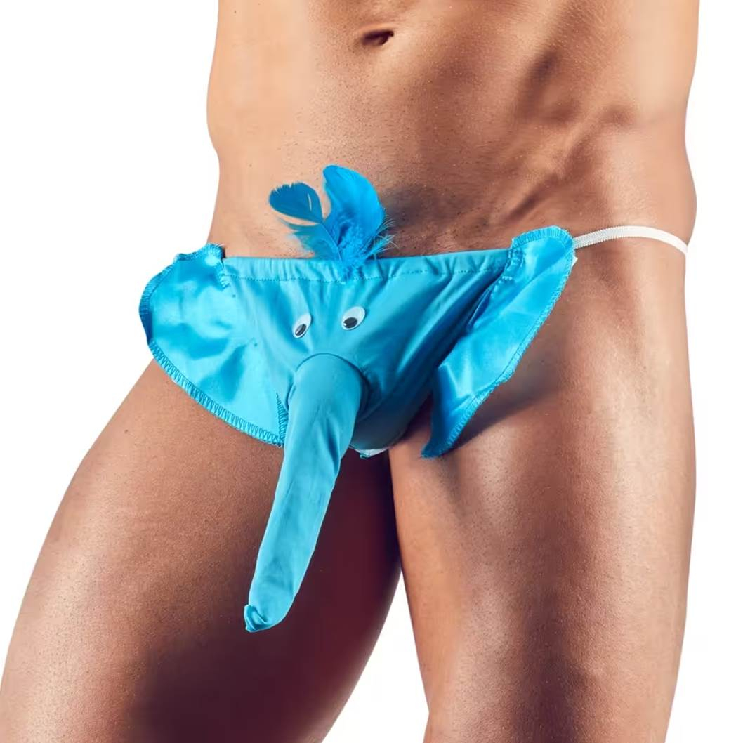 Elefanten Gag String- мужские стринги, которые выполнены в виде забавного слоника. Такое белье сможет украсить романтический вечер, сделает его веселым и интересным! Заставьте свою девушку подержать за хобот слоника, и она приятно удивится.