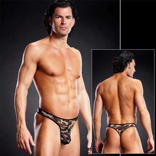 Мужские танга защитной расцветки хаки из очень тонкой соблазнительной сеточки. Трусики с заниженной талией, острочены черными бейками.