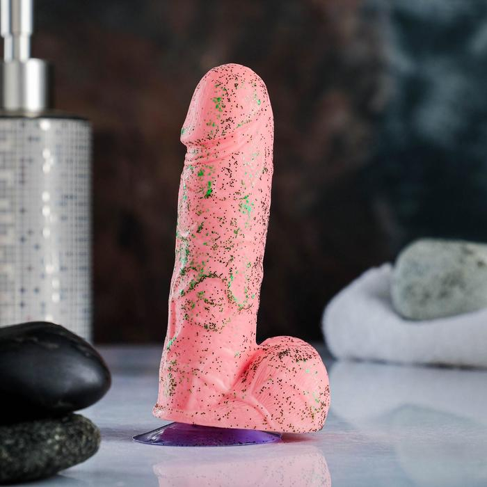 Фигурное мыло в виде члена, ручной работы, с выраженной головкой, ствол усыпан венками и для полной реалистичности мошонка. Имеет присоску, что очень удобно, прикрепите его на ровную поверхность в ванной и оно никуда не ускользнет.