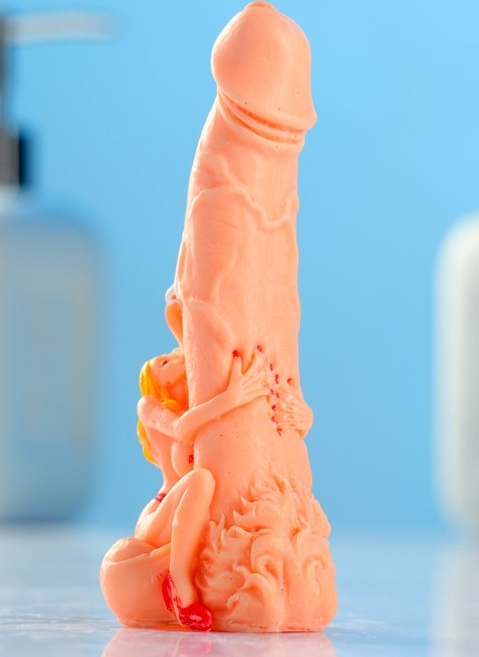 Фигурное мыло ручной работы "Оральные ласки", вылеплено в форме эрегирующего члена и ласкающей женщины.