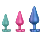Три изящные пробки, словно сестры-близнецы, отличаются лишь размером и цветом. Их дизайн воплощение совершенства: зауженный кончик нежно приглашает к знакомству, конусообразная форма обещает насыщенную стимуляцию, а основание в форме сердечка не только мило украшает игрушку, но и служит надежным ограничителем, гарантирующим безопасность. Тонкая ножка делает пробки удобными для длительного ношения, позволяя вам наслаждаться их присутствием в течение всей игровой сессии.