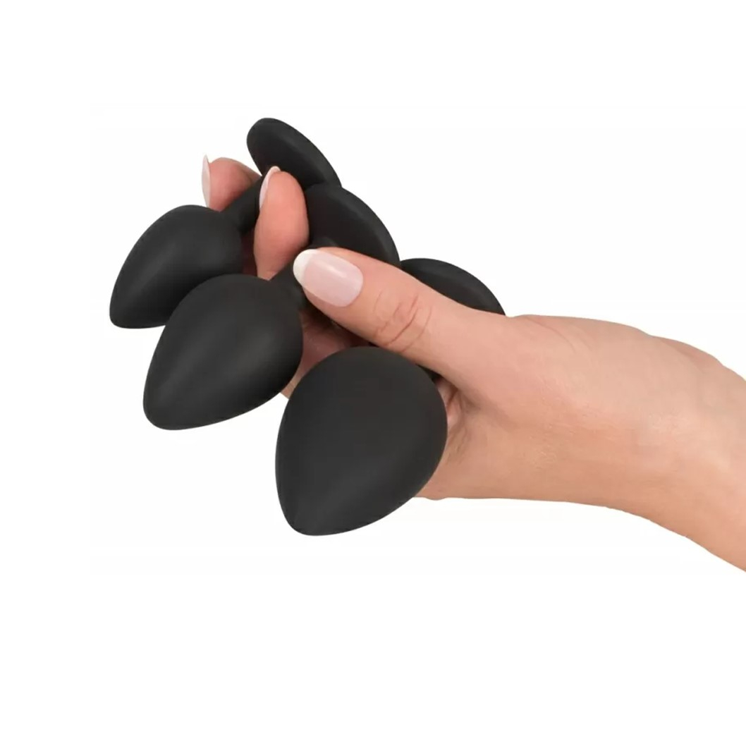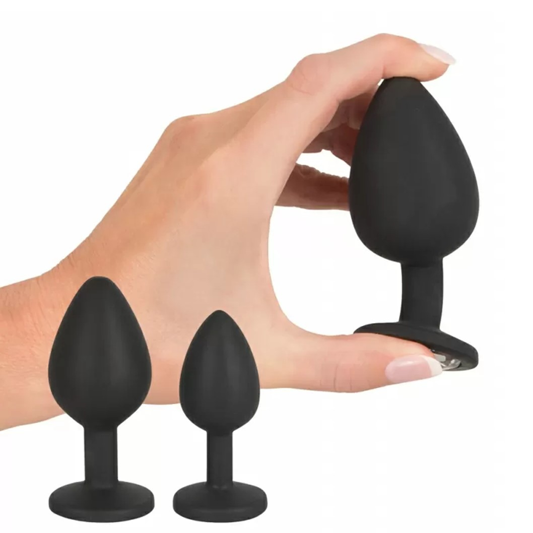 Набор будет отличным подарком для Вас и Вашего партнера. Три пробочки разного размера предназначены для анальной стимуляции, имеют каплевидную форму на тонкой ножке, сделаны из качественного силикона - бархатного и нежного на ощупь. Пробки гладкие и закругленные, легко вводятся в анус и подарят массу удовольствия. Основа игрушек широкая, не даст пробкам попасть слишком глубоко в анус и украсит интимную зону красивым кристаллом.