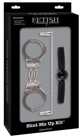 Набор Pipedream Shut Me Up Kit для BDSM-игры, начинающим, из коллекции Fetish Fantasy Series Limited Edition, вдохновленной на создание всемирно известной трилогией "Пятьдесят оттенков". Погрузитесь в волнующую и будоражащую кровь игру в подчинение с металлическими наручниками, насладитесь запретными удовольствиями с металлическими зажимами на соски и кляпом с отверстиями для комфортного дыхания.