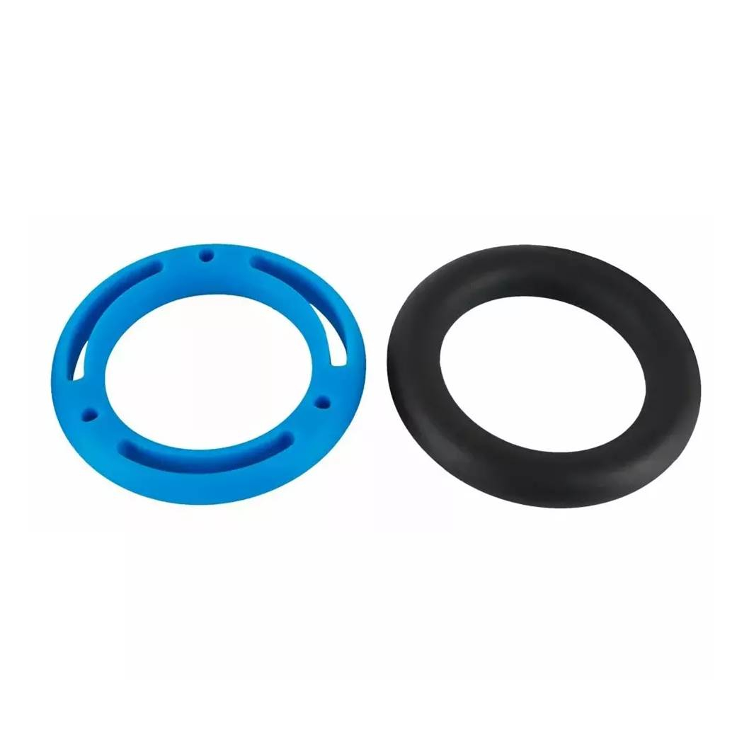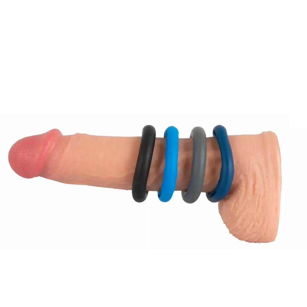 В этом наборе 2 кольца для члена - цвет (светло-голубой/темно-синий/серый/черный) и дизайн (гладкий/ с отверстиями) выбираются произвольно.