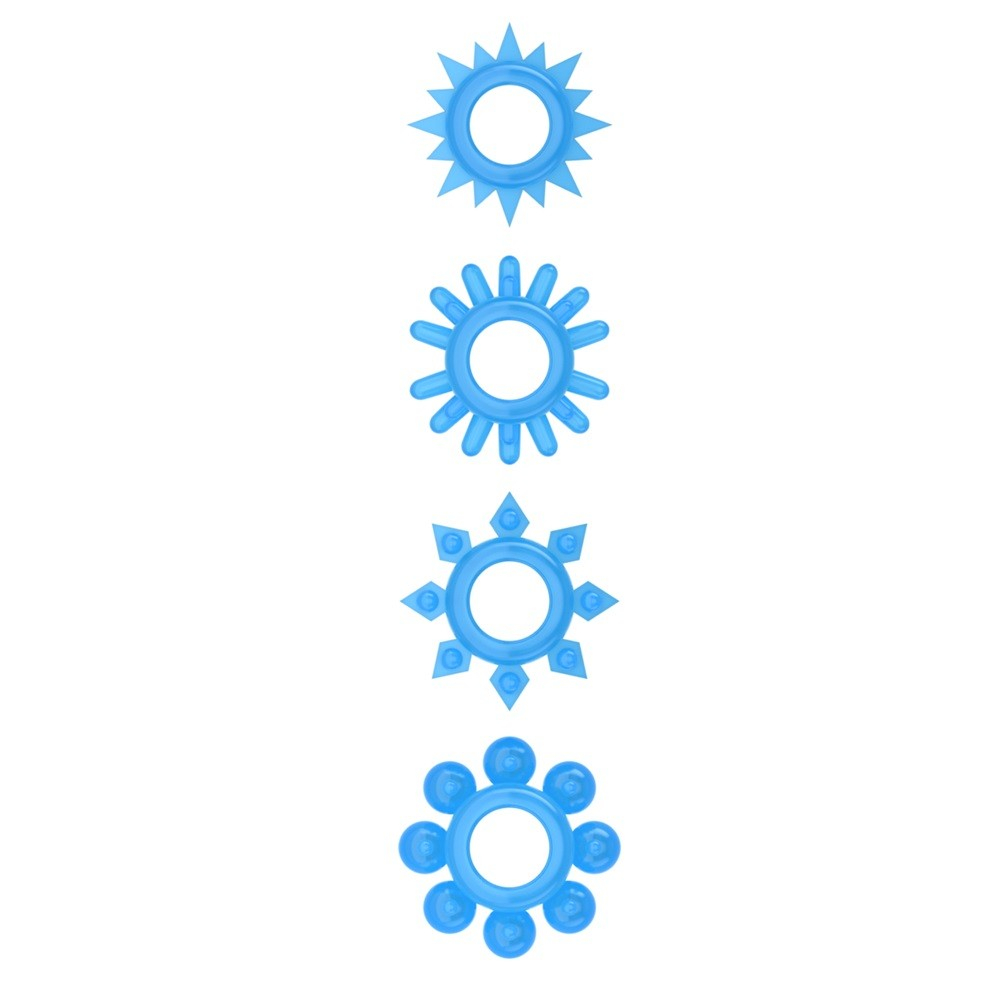 В наборе идет 4 кольца с разными стимулирующими эффектами, которые можно одевать совершенно по разному. Данные колечки не только интересны подсветкой, но они обеспечат тебе хорошую эрекцию, добавят тебе выносливости тем самым продлят половой акт по времени и помогут простимулировать влагалище девушки как следует.