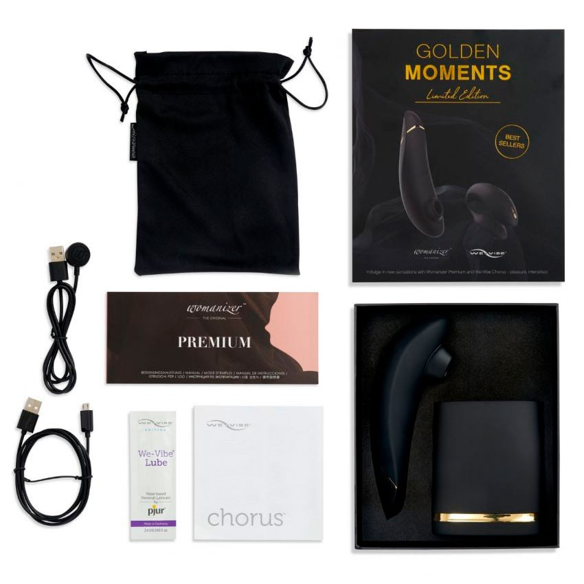 Вы привыкли выбирать самое лучшее? Коллаборация двух самых популярных немецких брендов подготовила особое предложение: вакуумный стимулятор клитора Womanizer Premium и парный вибратор We-Vibe Chorus в лимитированном черном-золотом цвете.
