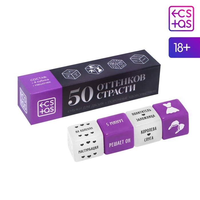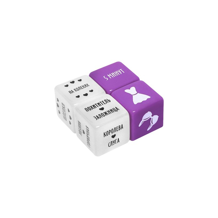 Хотите познать все грани наслаждения? Нужно лишь бросить кубики!Внутри вас ждёт четыре кубика. Один из них определит роли, второй - атрибут одежды, который должен быть на девушке, третий - что нужно делать, а четвёртый - время, за которое это нужно сделать.
