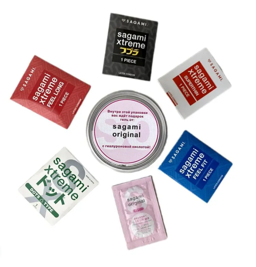 Также внутри каждой упаковки вас ждет приятный сюрприз в виде гель-лубриканта Sagami Original 3 гр. в подарок.