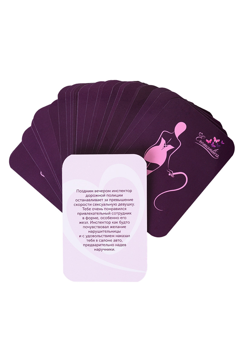 В наборе идет 25 карт с сценариями, вам ничего не надо придумывать, просто вживляйтесь в образ и дарите друг другу удовольствие.