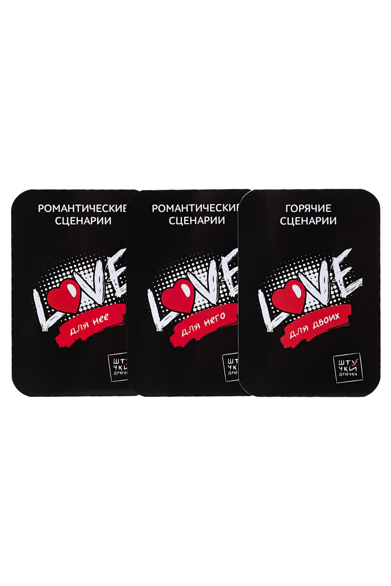 В наборе девять романтических сценариев для его действия, десять – «для нее» и семь горячих сценариев «для двоих», чтобы добавить перчинку и разнообразить интимную жизнь.