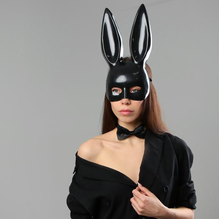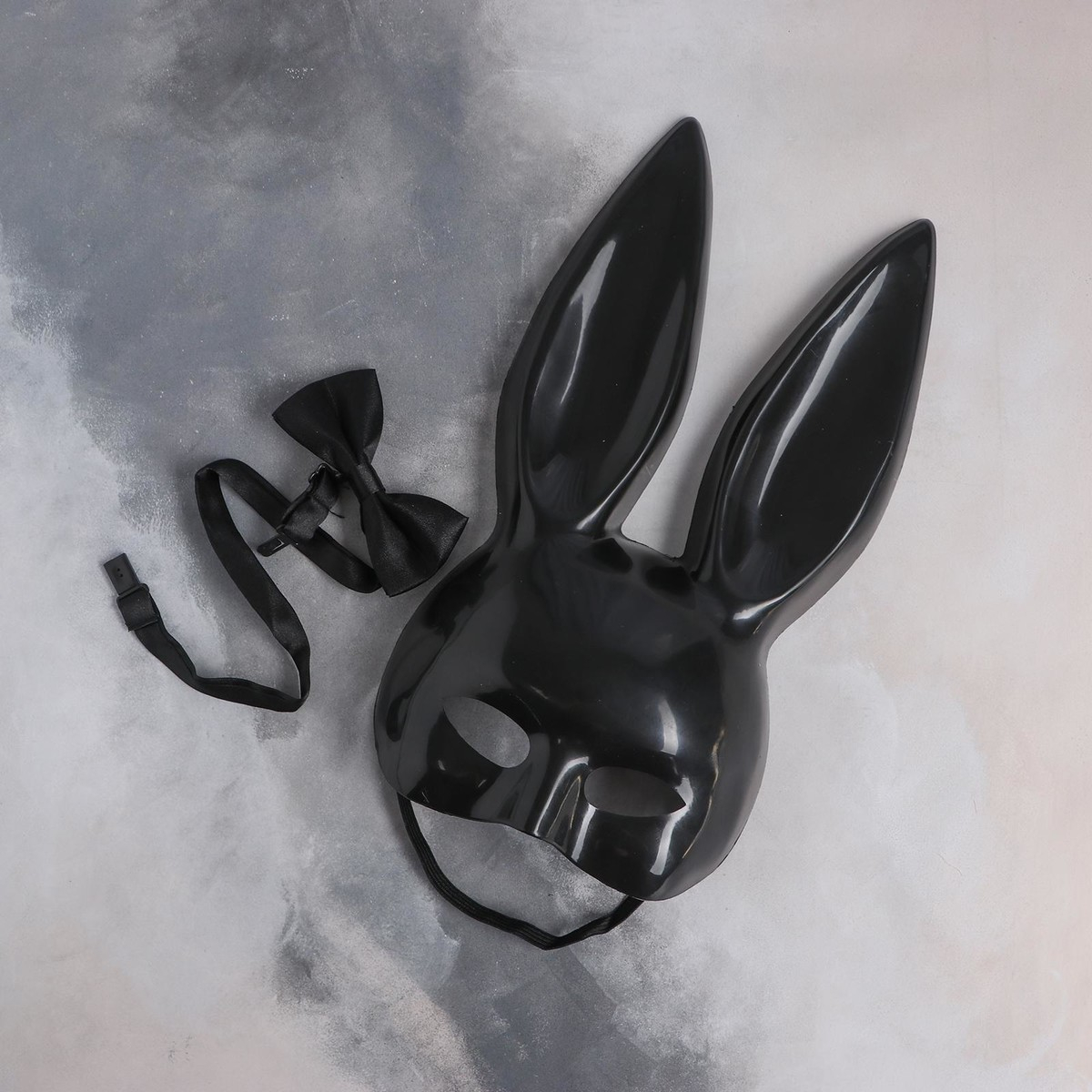 Набор состоит из жесткой форменной маски зайки и бабочки-галстука.