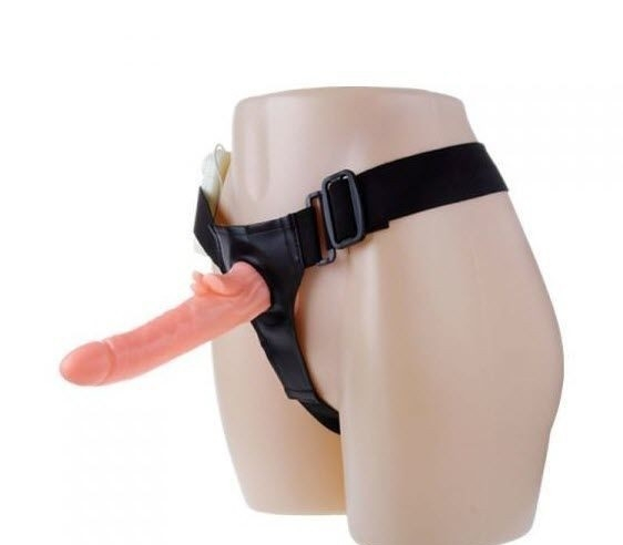 Классический страпон с трусиками из кожзаменителя, размер регулируются ремнями -"резинками". Материал ПВХ. Длина насадки - 18 см, диаметр 4 см. Вибратор с выносным пультом работает от 2-х батареек АА (нет в комплекте)