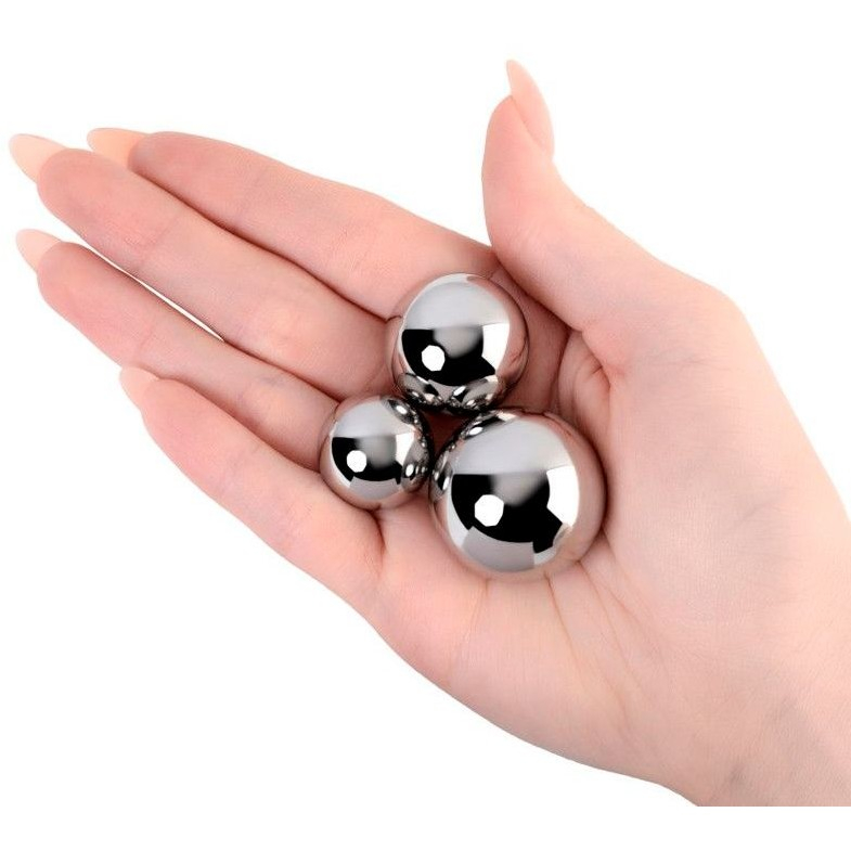 Набор Toyfa состоит из трех вагинальных шариков без смещенного центра тяжести. Они выполнены из прохладной медицинской стали и имеют разный вес и разный диаметр. Могут использоваться как вместе, так и по отдельности.