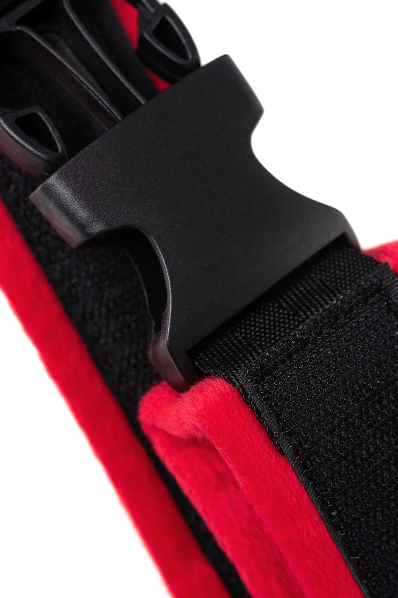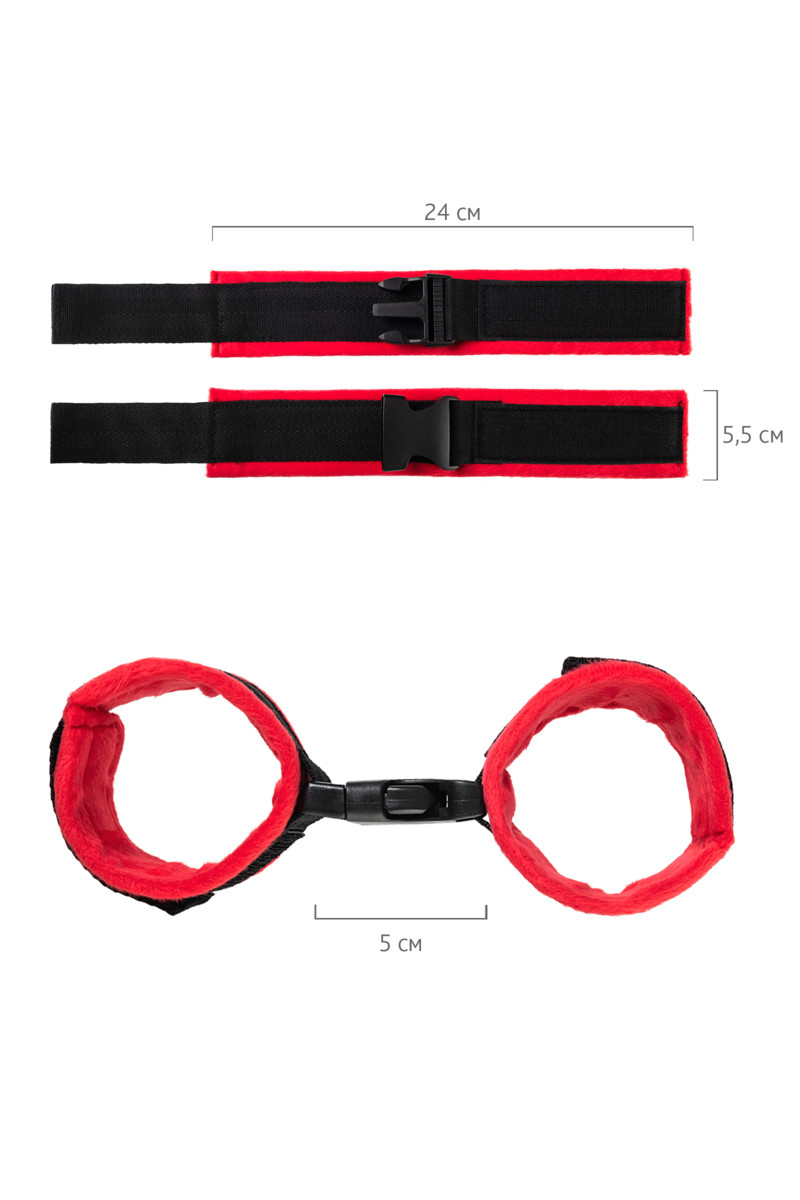 Эти яркие наручники выполнены из мягкого материала, не причиняют дискомфорта и тактильно приятны. Фиксируются застежкой велкро, поэтому подходят для запястья любого размера. Между собой руки сцепляются большим пластиковым карабином на очень маленьком расстоянии.