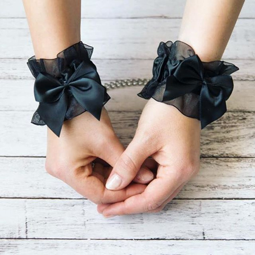 Роскошные манжеты из шуршащей ткани, украшенной атласными бантиками, соединяются между собой металлической цепочкой. Сегодня самые сокровенные фантазии будут воплощены в жизнь!