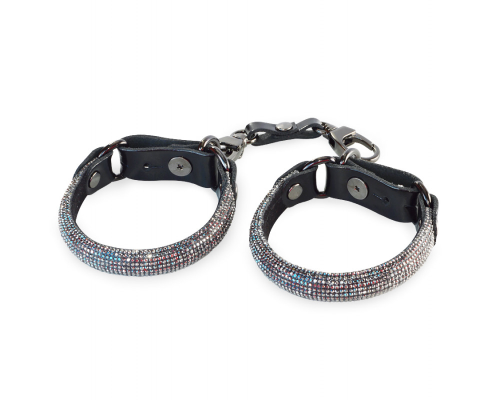 Сверкающие наручники украсят Ваше тело, добавят в Ваш образ шика и особой сексуальности. Внутрення сторона наручников велюровая, лицевая - усеяна множеством сверкающих кристаллов. Застегиваются при помощи лакового ремешка и кобурной кнопки.