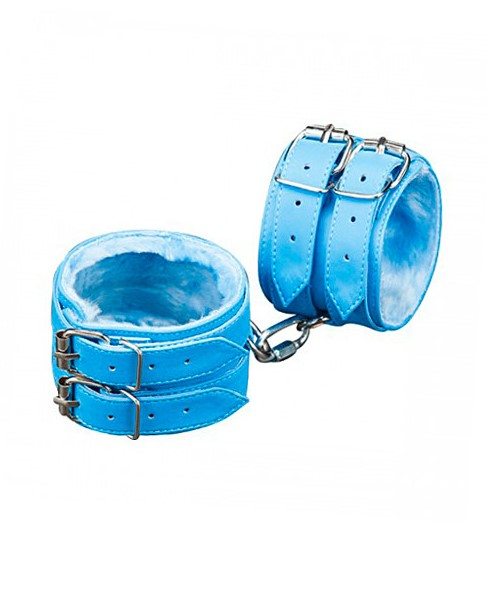 Наручники изготовлены из искусственной кожи, с внутренней стороны подклада их мягкого меха. При изготовлении использована фурнитура с никелевым покрытием. Соединяются между собой коротким ремешком с двумя карабинами на концах. Не нарушают кровообращение, надёжно фиксируются на запястьях с помощью двух ремешков.