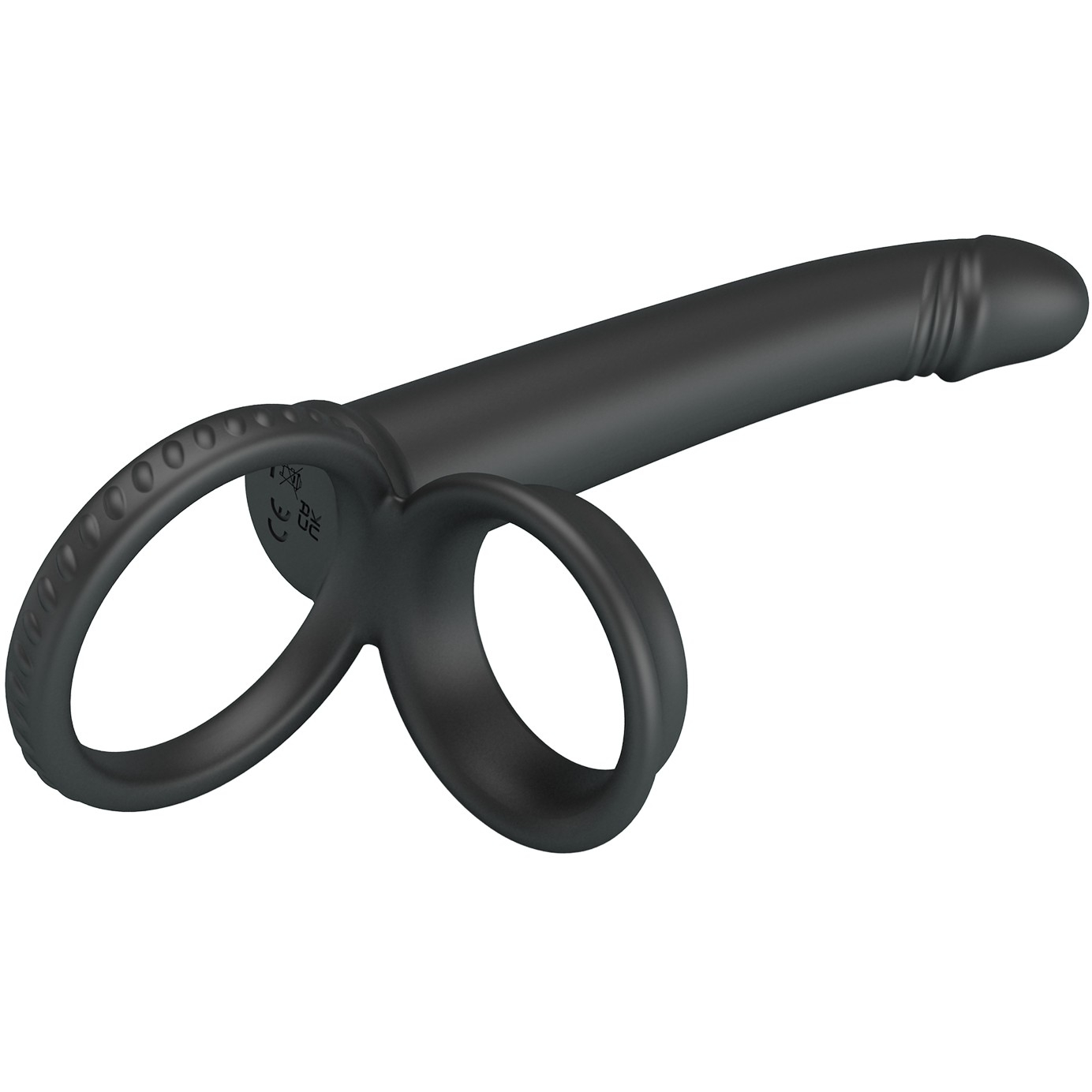 Насадка для двойного проникновения с кольцом для мошонки Moses - это невероятные впечатления обоих партнеров! Насадка при помощи наименьшего кольца крепится на половой член, а увеличенное кольцо надевается на мошонку, такая фиксация усиливает впечатления мужчины, в разы, т.к. кольцо приподнимает мошонку и дарит мужчине ощущение на грани оргазма во время действа!