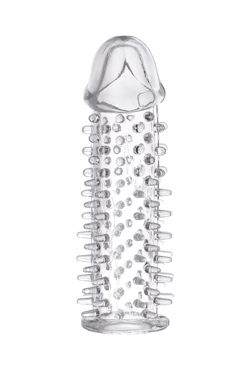 Эластичная насадка на пенис с рельефной поверхностью и мощной головкой. Поверхность стимулятора покрыта мягкими шипиками.