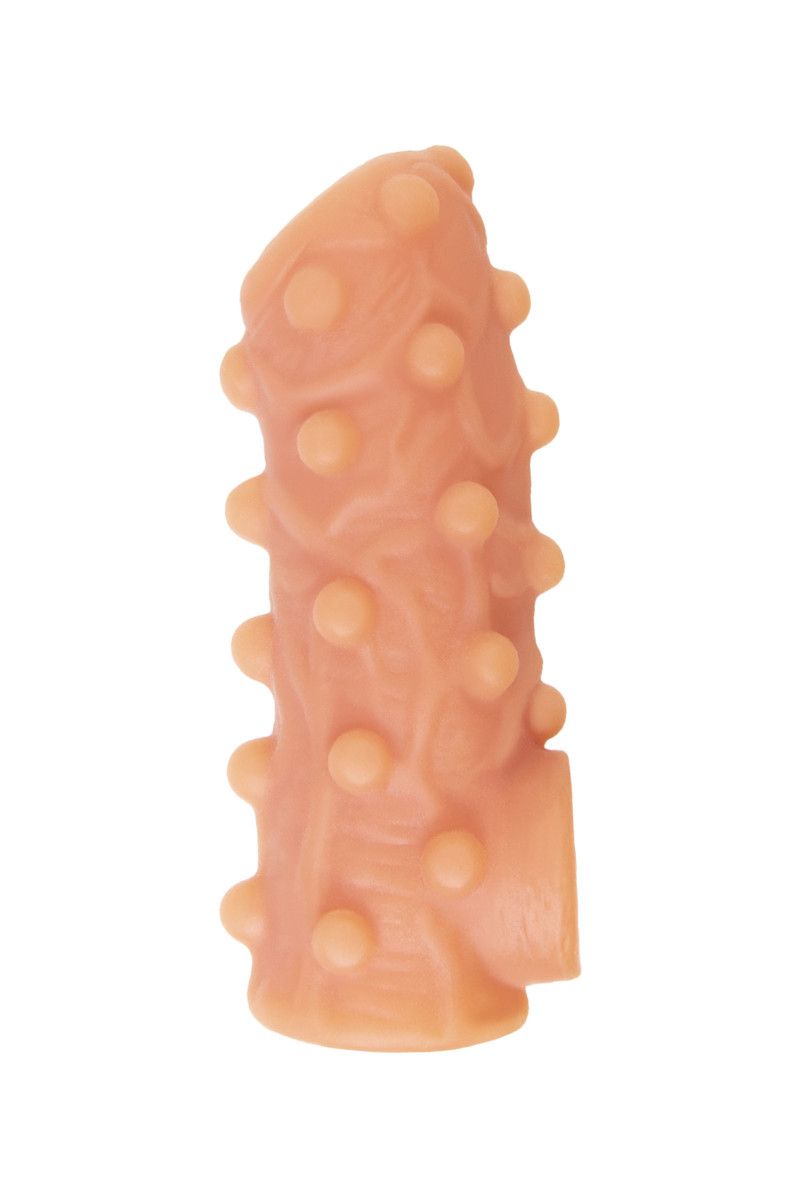 Насадка имеет форму- рукав, плотно прилегает к пенису, создавая дополнительную толщину и оставляя головку открытой. Это позволяет сохранить чувствительность головки, задерживая эякуляцию. В основании есть отверстие для мошонки, с помощью которого вы надежно зафиксируете насадку на пенисе, не ограничиваясь в активных движениях. Насадка, за счет плотного облегания мошонки и головки, усиливает эрекцию и исключает оттока крови от члена.