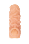 Насадка имеет форму- рукав, плотно прилегает к пенису, создавая дополнительную толщину и оставляя головку открытой. Это позволяет сохранить чувствительность головки, задерживая эякуляцию. В основании есть отверстие для мошонки, с помощью которого вы надежно зафиксируете насадку на пенисе, не ограничиваясь в активных движениях. Насадка, за счет плотного облегания мошонки и головки, усиливает эрекцию и исключает оттока крови от члена.