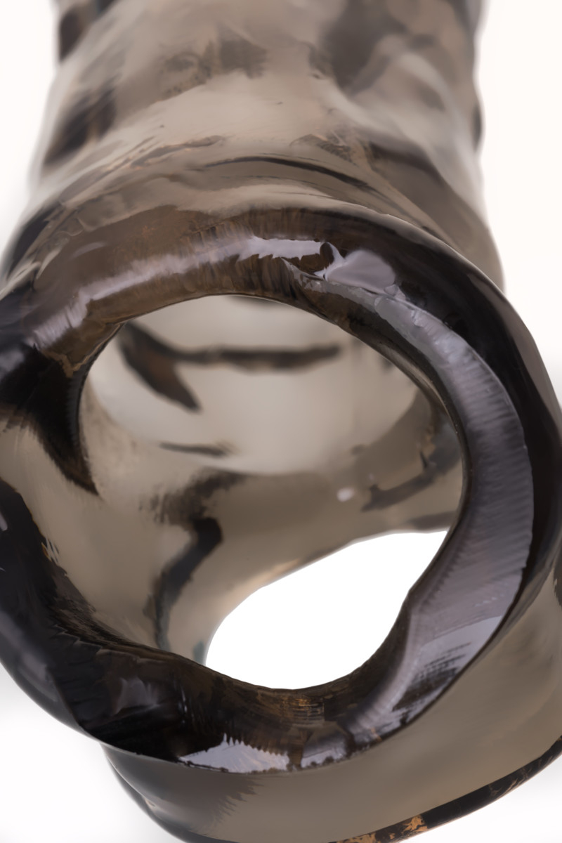 • Кольцо для мошонки надежно фиксирует насадку и для облегает задержку эякуляции.