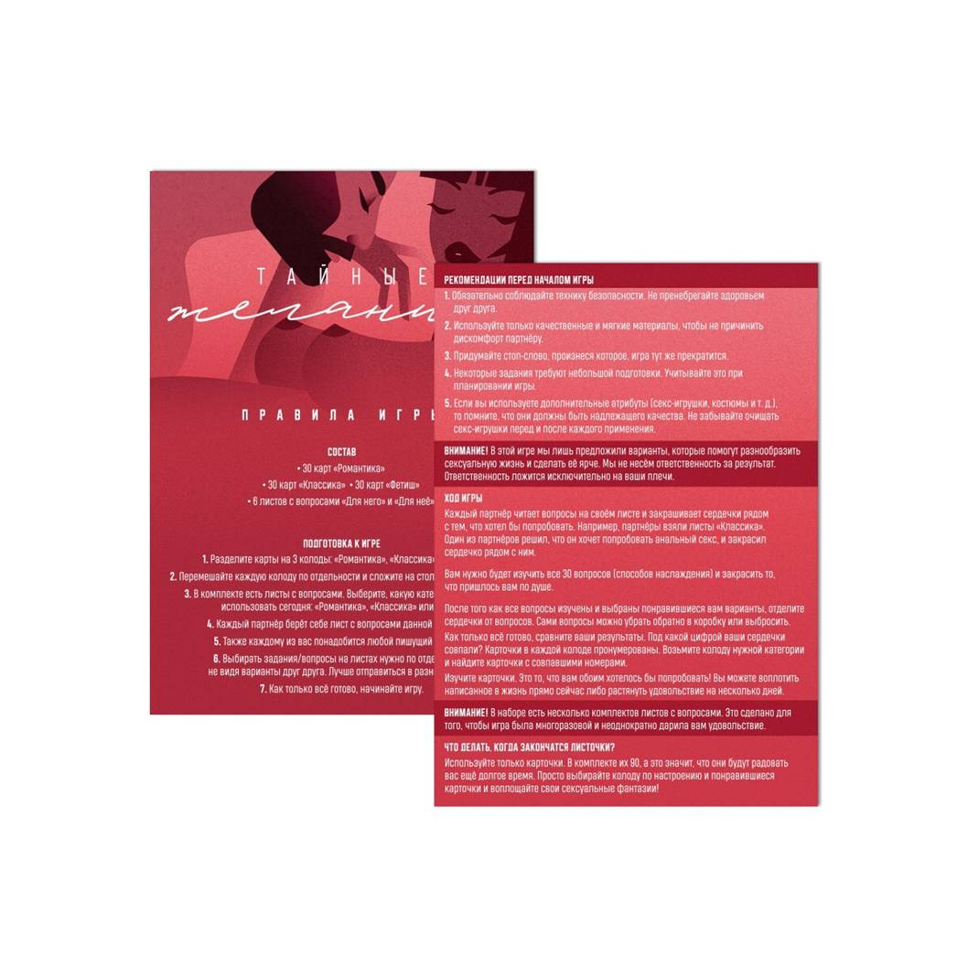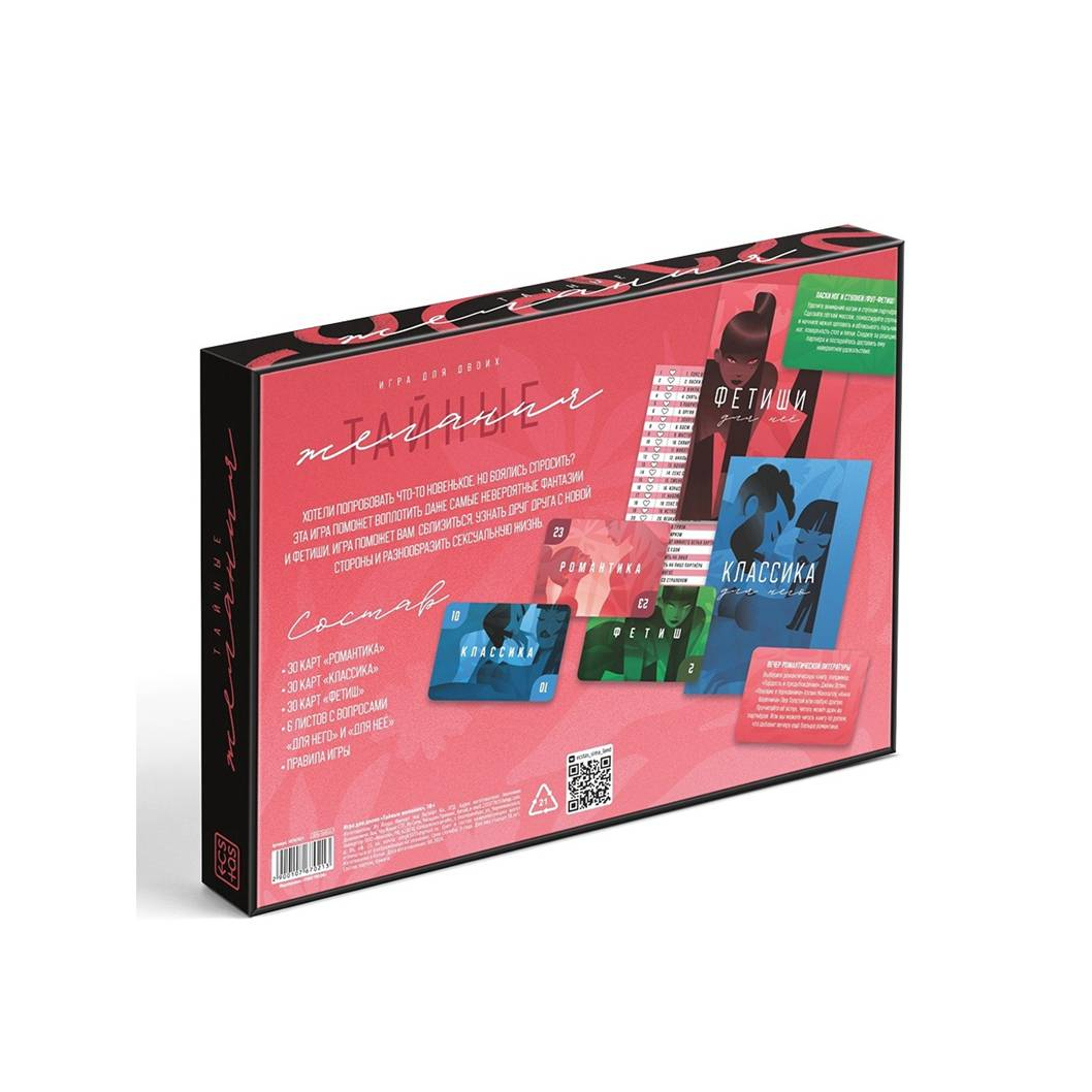 «Тайные желания» игра, в которой правила пишете вы!» Представьте: вы сидите напротив друг друга, и вдруг на столе оказывается не просто игра, а ключ к самым сокровенным фантазиям. Те желания, о которых вы молчали, вдруг превращаются в карты, которые можно разыграть. И самое захватывающее вы узнаёте, что думает и чего хочет партнёр именно сейчас.