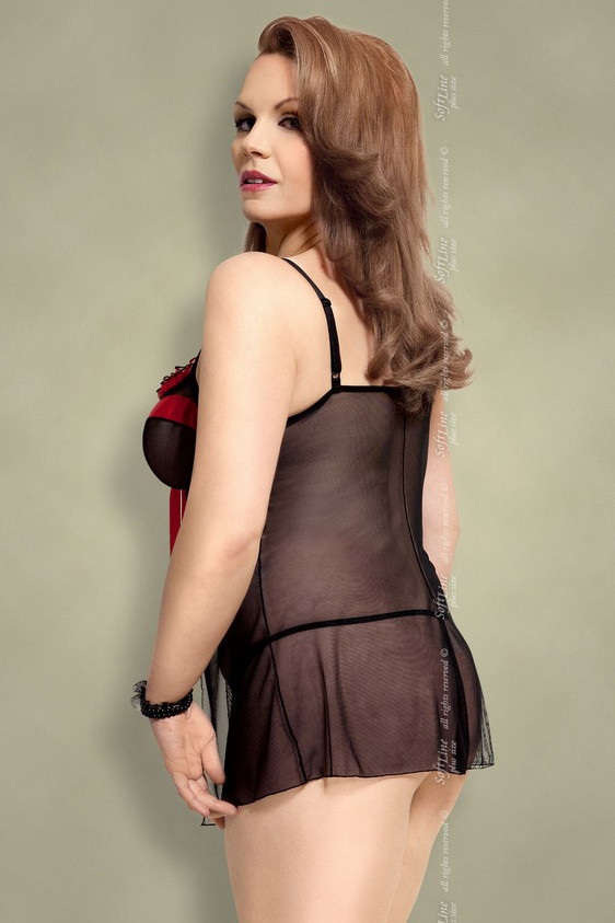 Эротично прозрачная сорочка. Бюст на косточках с застежкой впереди, предает красивые формы и очень хорошо держит грудь. Бюст украшен игривыми рюшками и атласной лентой, которую можно завязать в привлекающий бантик. В комплекте также стринги и подвязка.