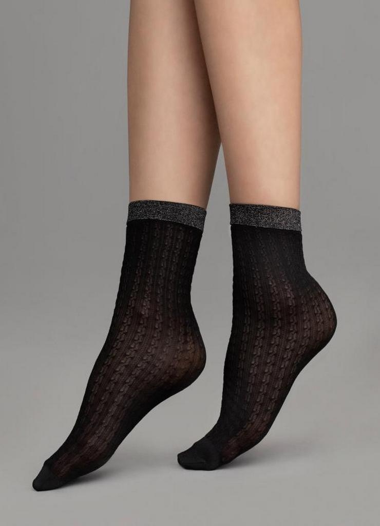 Ажурные непрозрачные носки из микроволокна 3D с люрексовой резинкой.