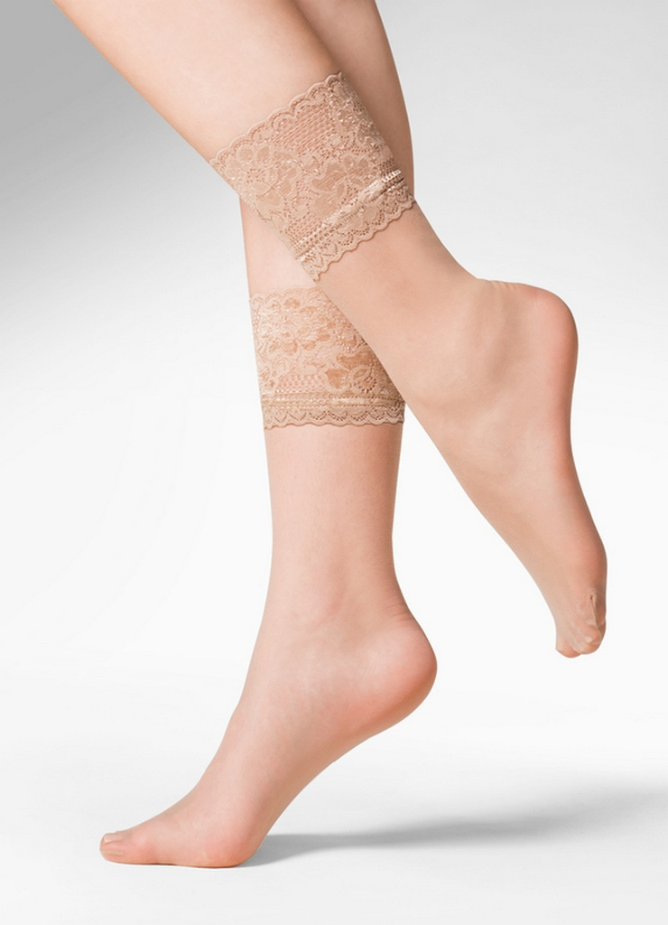 Кружевная коронка с орнаментом на силиконе, плотно прилегает к ножке, не сдавливая и не доставляя дискомфорта. Уверенность в каждом шаге - широкая кружевная резинка оставляет носки на месте на весь день!