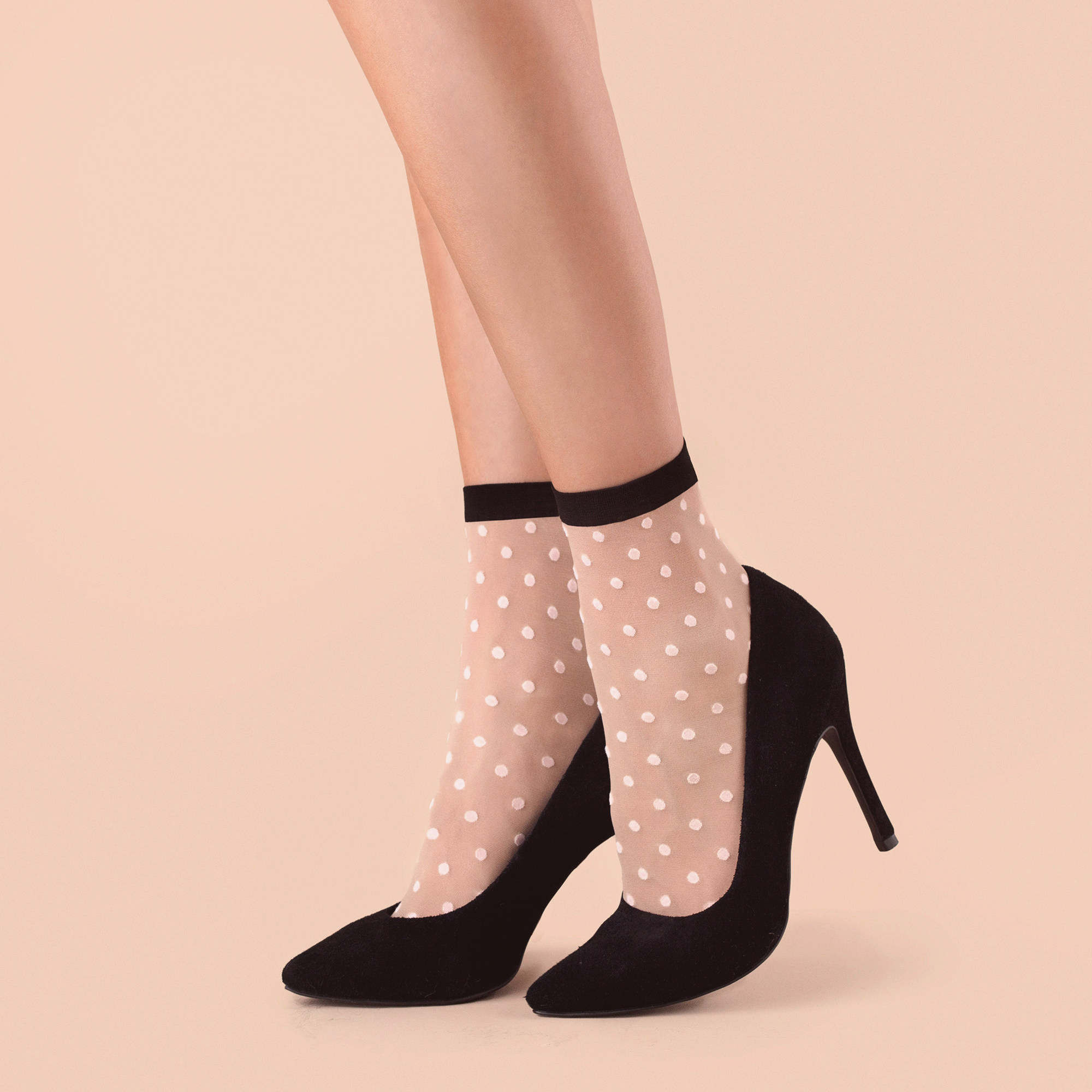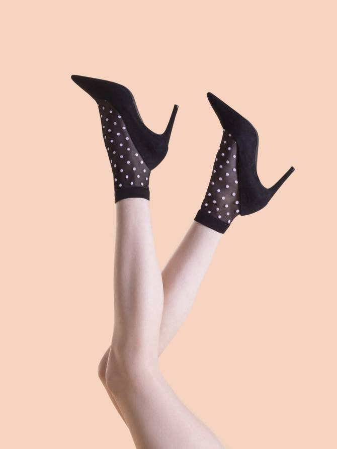 Фантазийные тонкие носочки плотностью 20 den с игривым принтом горошек.
