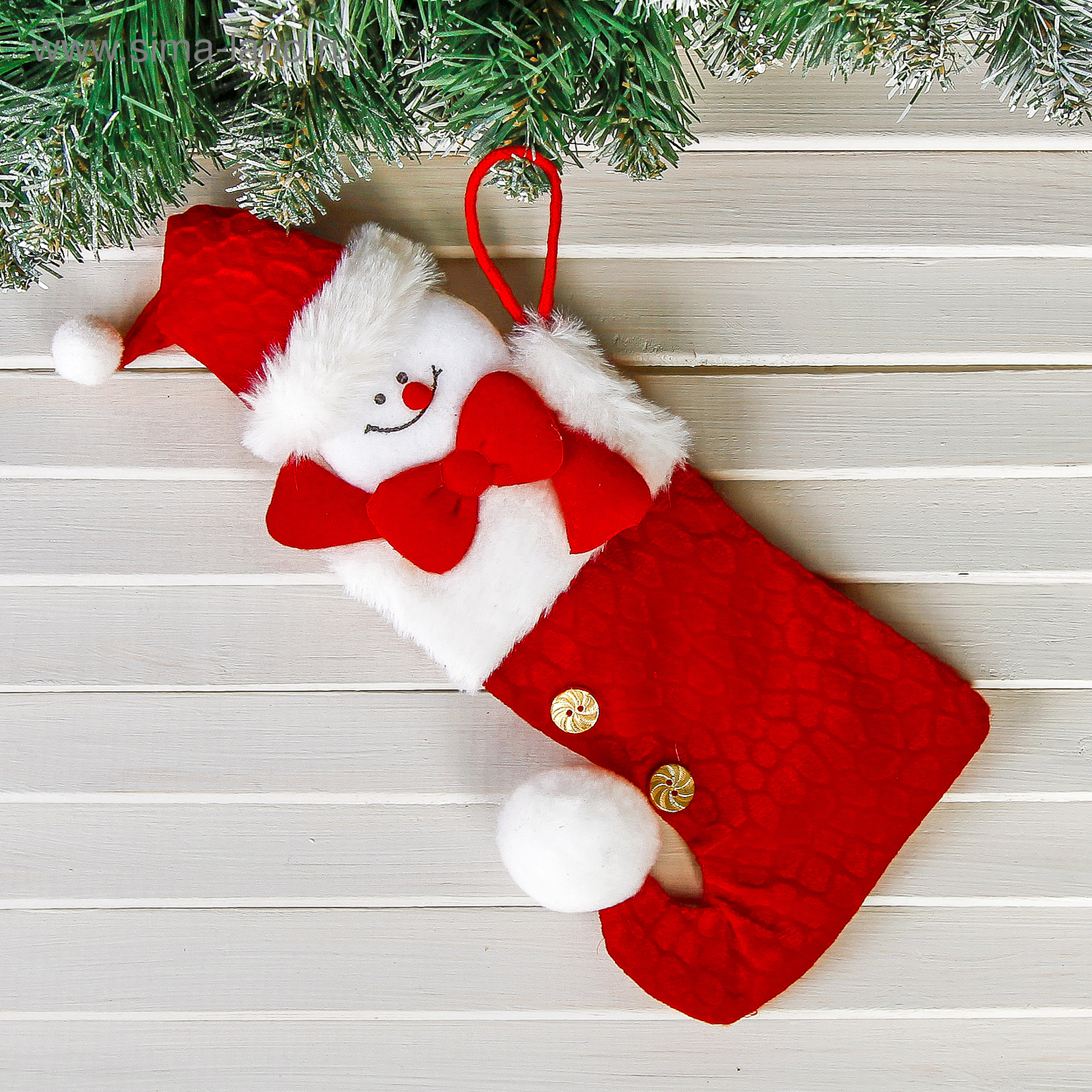Красный носок помпошка в виде снеговика скроет ваш маленький секрет под елкой.