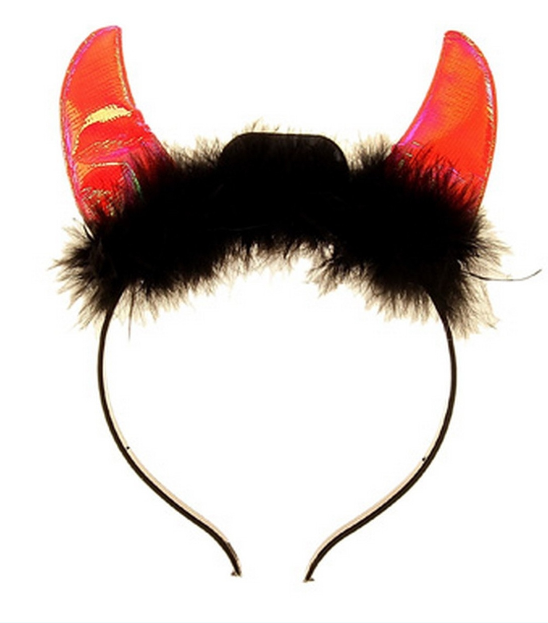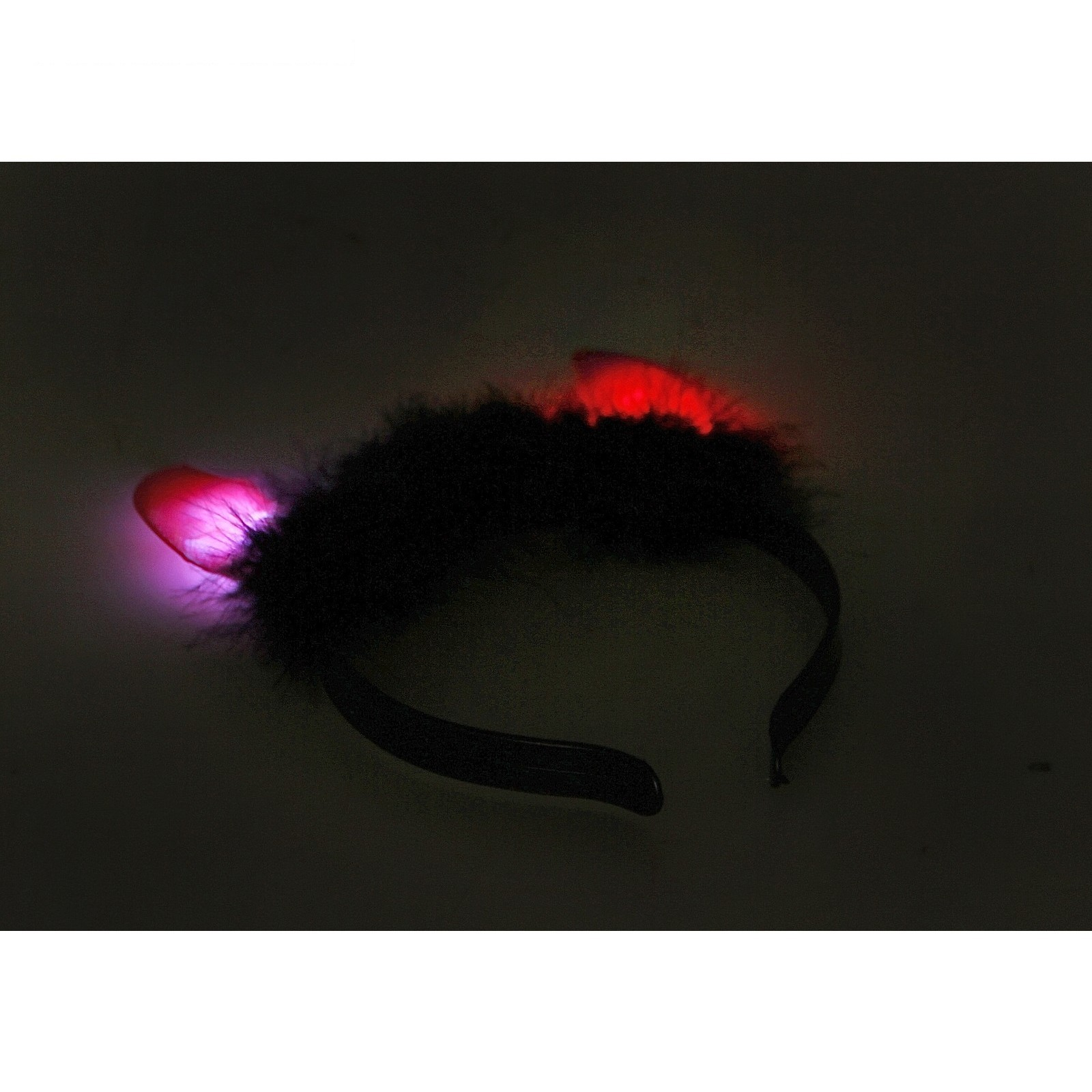Ободок на голову в виде рожек чертика, украшенный пухом и светится в темноте, станет прекрасным дополнением к вашему эротическому образу.