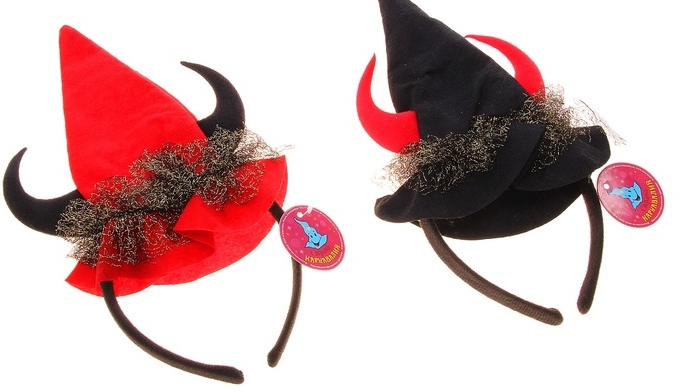 Праздник Хэллоуин появился в России относительно не давно и за столь короткий промежуток времени успел полюбиться большей части населения. Людям настолько понравилось примерять наряды вампиров, призраков и других потусторонних существ, что они решили дополнить свой наряд и прочими аксессуарами. Например, ободок "Шляпа ведьмы" с рожками, цвета МИКС. Он внесет ноту задора и веселья ребенку на утреннике, а взрослым на вечеринке.