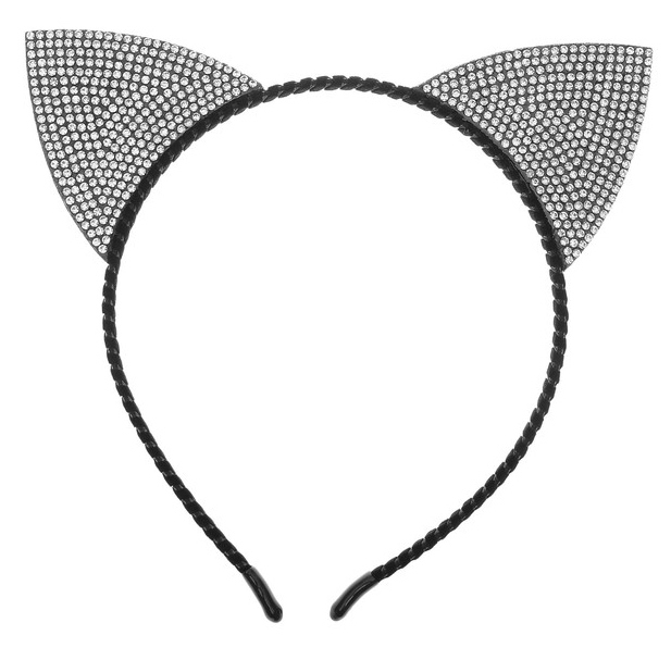 Кошачьи ушки-металлический ободок, обтянутый шелком, украшенные стразами.