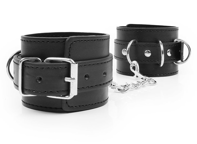 В комплект входит прочная металлическая цепочка, которой при необходимости можно соединить изделия. Размер оков регулируется с помощью ремней.