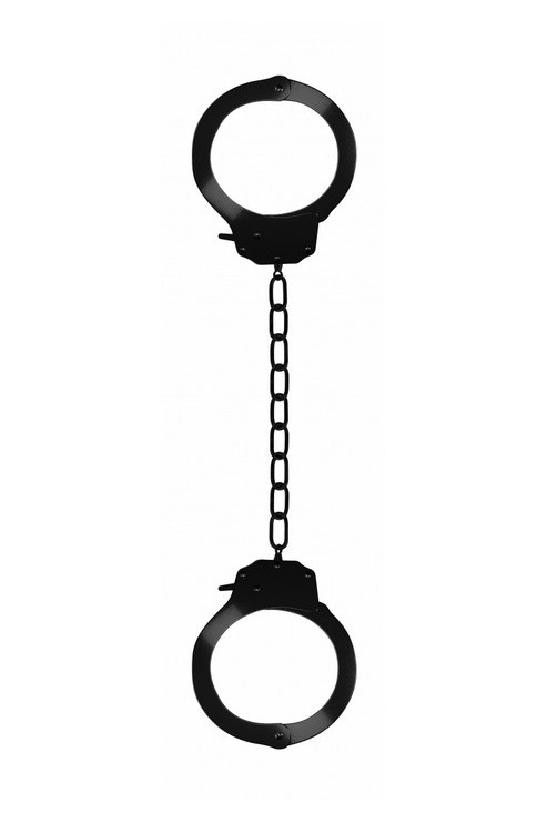Оковы на ноги черного цвета с кнопкой быстрой разблокировки в случае утери ключей.