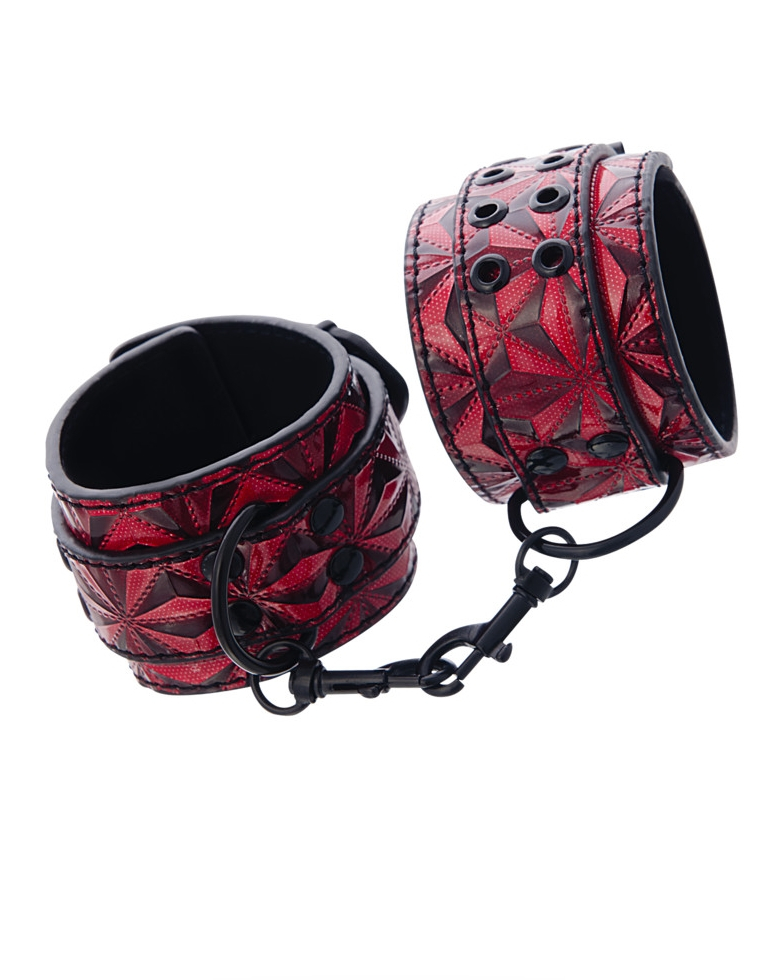 Манжеты между собой соединяются с помощью удобных карабинов, что расширяет спектр их использования, так как у вас есть возможность использовать их с другими бдсм-элементами.