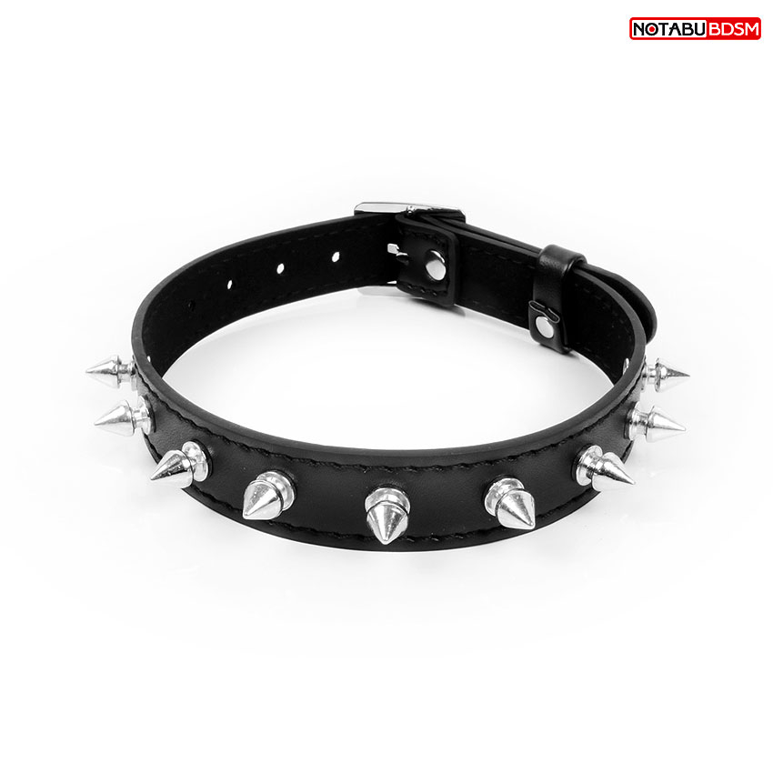 Оригинальный ошейник для любителей БДСМ-игр, декорированный металлическими украшениями в виде шипов.