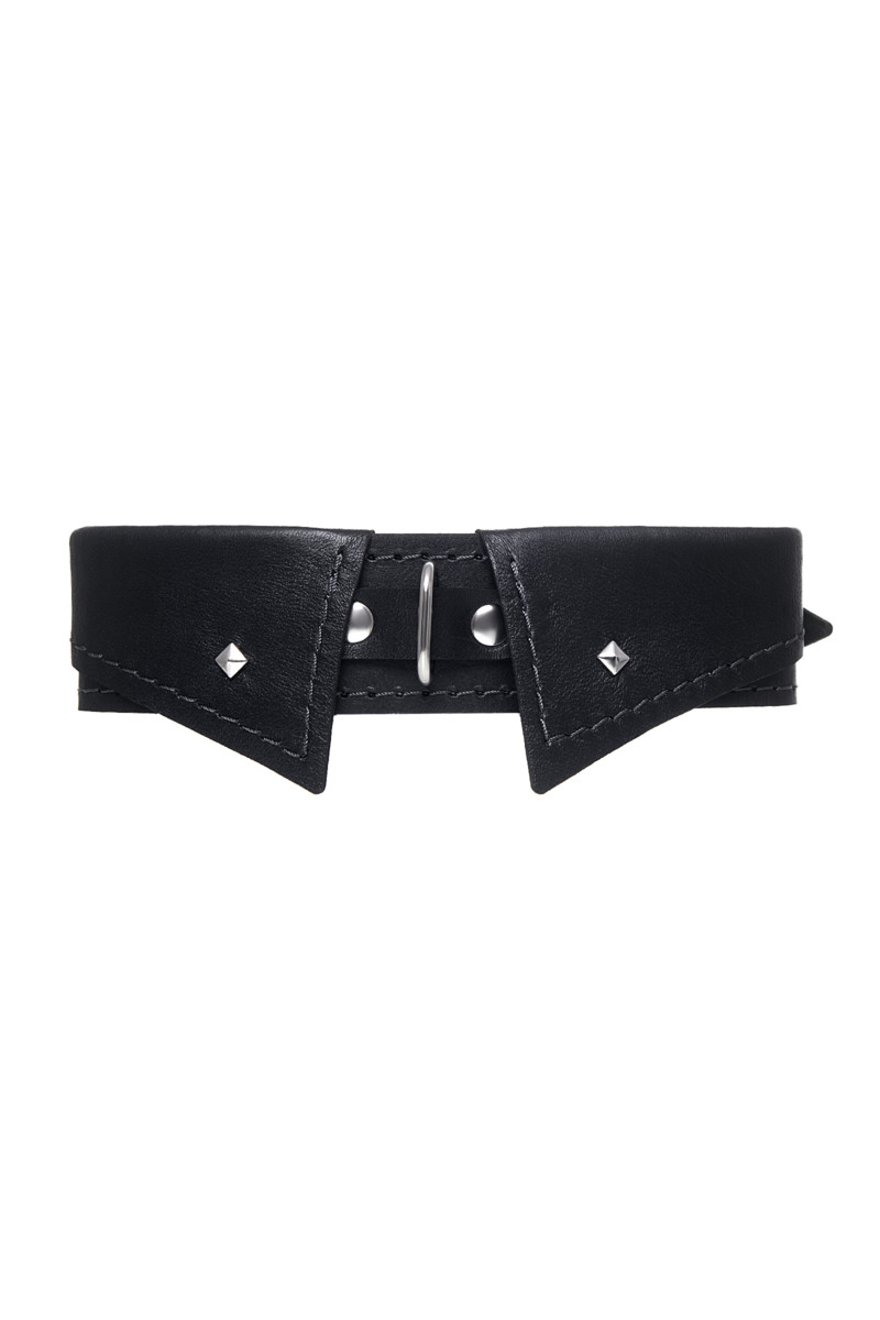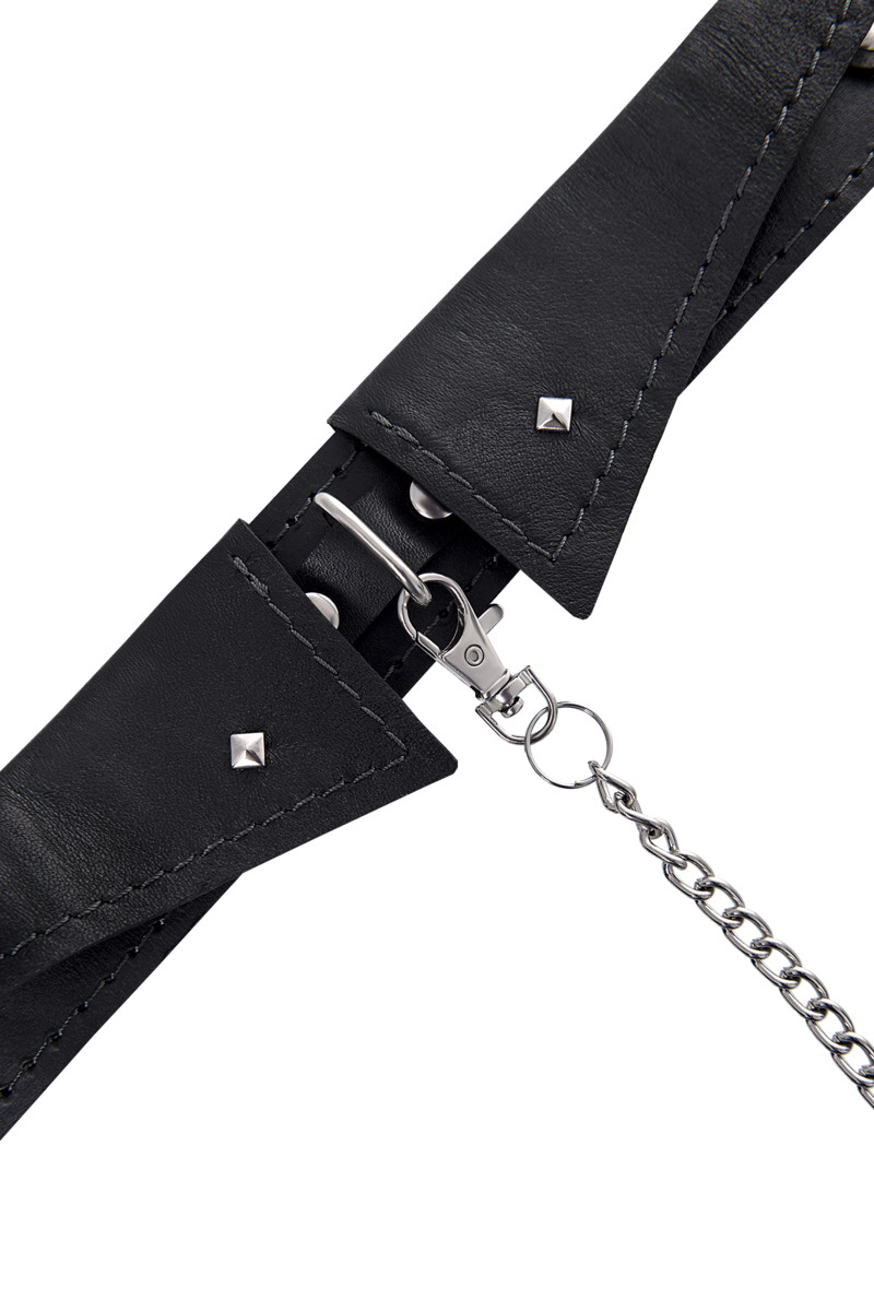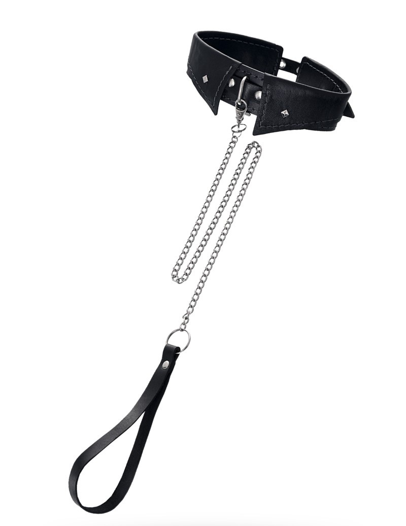 Оригинальный дизайнерский ошейник-воротничок из натуральной кожи производства Pecado с металлическим поводком может стать отличным дополнением в БДСМ-образ. Ошейник может выполнять не только свою первичную функцию — без поводка аксессуар послужит своеобразным украшением и добавит строгости в образ. Добавьте пикантную деталь в ролевую игру и воплотите самую смелую сексуальную фантазию в реальность — взрослые игры для взрослых. Поводок в виде цепочки имеет ручку-петельку для удобства хозяина и крепится надежным стальным карабином к кольцу на ошейнике. Легко отстегивается и превращает ошейник в чокер в форме воротника, который легко вписать в любой образ. К металлическому кольцу также можно присоединить и другие аксессуары при помощи карабинов.