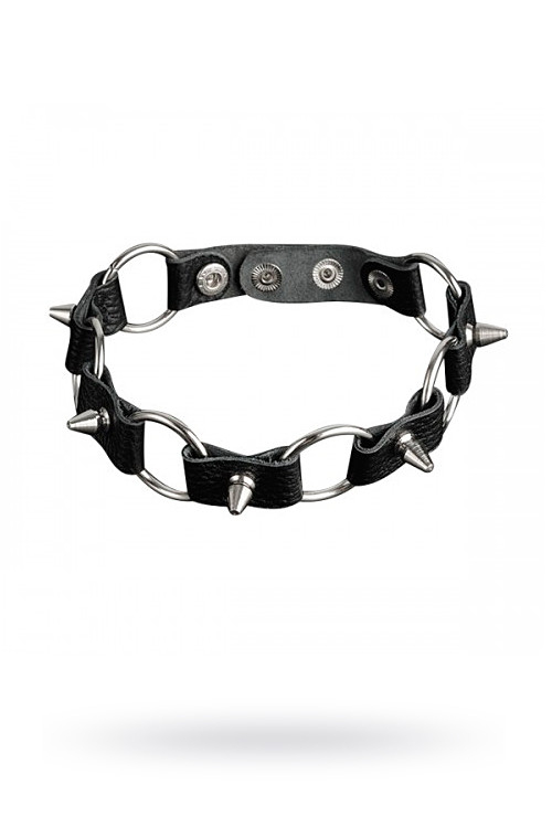 Изготовлен из натуральной кожи. При изготовлении использована никелированная фурнитура. Ширина ошейника 20 мм., длина шипов 12 мм. Размер универсальный.
