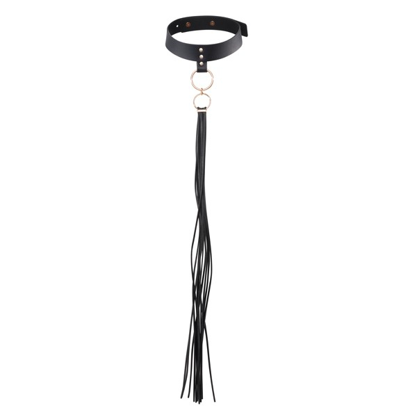 Элегантный широкий дизайнерский ошейник, декорированный ниспадающими кистями.