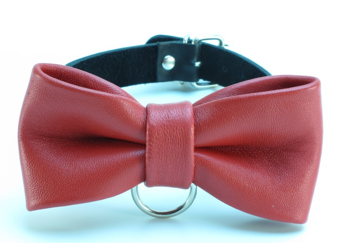 Черный ошейник с красной бабочкой идиально подойдет как для мужчин так и для женщин. В ошейник вставлено 3 D-кольцо, с которым фетиш-изделие соединяется с бандажом или поводком.