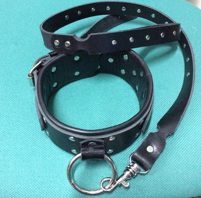 Ошейник сделан из мягкой кожи хорошего качества с большим кольцом для карабина. В комплекте идет поводок из кожи на одном конце карабин на другом петля.
